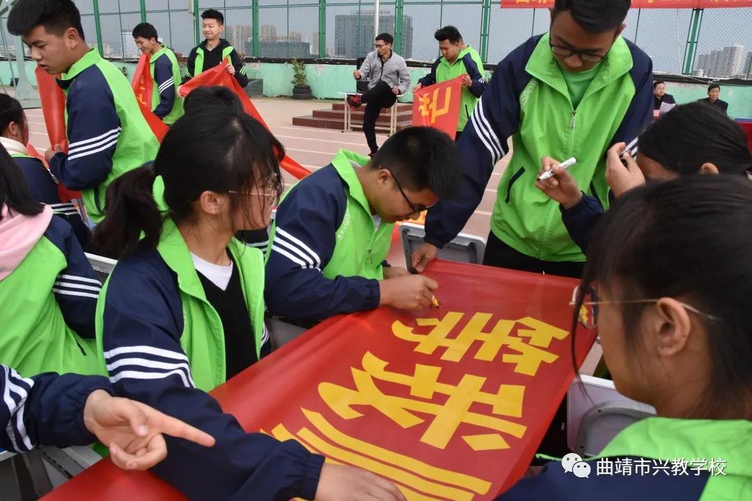 浦校长对高三年级全体教师的辛苦付出表示肯定,并向高三学子表示了浓浓的爱意。今天,每个班级接过的锦旗,不仅仅是励志锦旗,更是战旗,你们接过的是责任担当、是母亲的叮嘱、是父亲的眼神、是老师的期望、是时代的使命、更是自己的未来。今天的誓师,宣告了今年的高考从今天开始了,高考90天,奋斗90天,励志90天,练出好成绩,练出好品德。紧接着,浦校长对即将参加高考的高三学子提出了以下要求:一是要自信。一时的落后,不代表永远落后。在这90天里,一定要立足于自己的客观实际。二是要制定出90天高考新规划。我们基础薄弱,但意志要坚定,每一位同学每一天都要有新进步,都要有新收获。在实现目标中,要学会总结,学会沉淀,学会鼓舞鞭策自己,学会在这90天中总结出自己奋斗的新经验、新方法,战胜困难的决心和勇气,用这90天谱写一个个励志故事,一个个让兴教、让学弟学妹感动的故事。三是坚持、坚持、再坚持。通过坚持、努力,进一步的体现、实践“求真务实,知行合一”的校训,“团结奋进、明礼崇德”的校风,“自发自觉、以生为本、乐业奉献”的教风,“自律自强、勤学好问、快乐担当”的学风,充分展示吃苦耐劳的性格,团结奋进的胸怀,诚实守信的品德,勇敢拼搏的胆识,争创一流的追求。在这90天里,练思想,练品德,练意志,练出好成绩,在这90天里,进一步的完善、学会会学习、会思考、会创造,为你们的未来打下坚实的基础。最后祝愿大家高考都能取得满意的成绩。 充满激情与活力的高考百日誓师大会,大大激发了同学们实现理想的雄心壮志,为100天后的高考吹响了冲锋前进的号角。2021年的高考,兴教师生必将全力以赴,兴教学子必将创造新的奇迹!