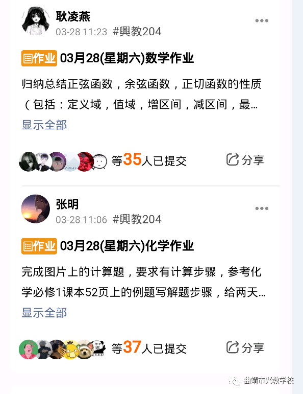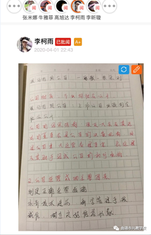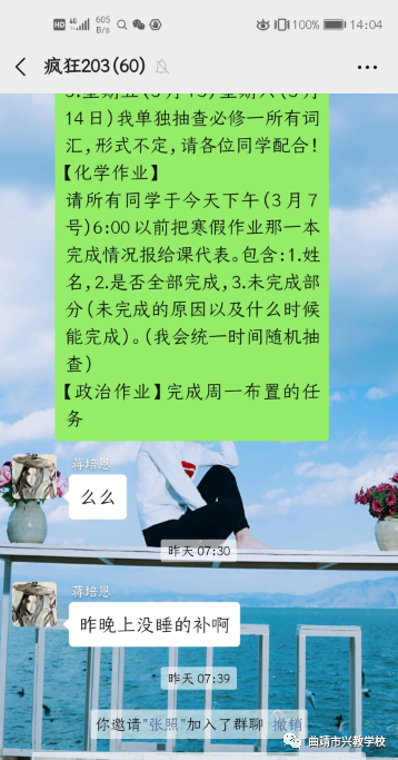 各任课教师每天对学生的作业进行跟进和辅导,各班主任与家长积极沟通交流,通过班级群、家长群及时掌握学生学习情况,督促学生按时按质按量的完成学习任务,极大的保证了线上教学的质量和效果。
